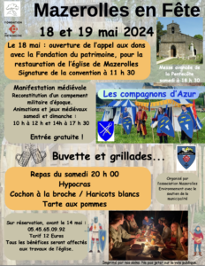 Restauration de l’église Notre Dame de Mazerolles Cliquez ci-dessous pour accéder à la page de la Fondation du Patrimoine : https://www.fondation-patrimoine.org/les-projets/restauration-de-leglise-notre-dame-de-mazerolles
